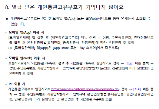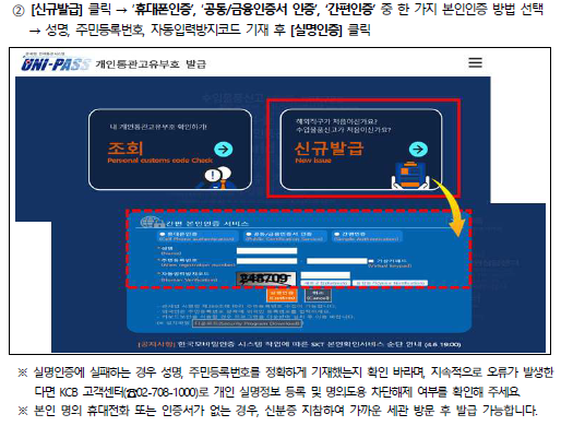 조회 과정은 로그인 없이 본인 인증으로도 진행할 수 있습니다. 즉, 관세청 사이트(UNI-PASS)에 접속해 휴대폰 인증만으로 자신의 부호를 즉시 확인할 수 있습니다.