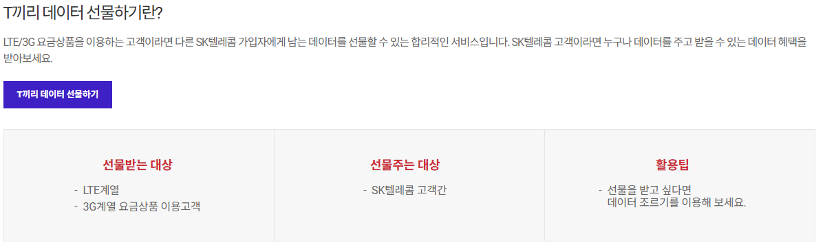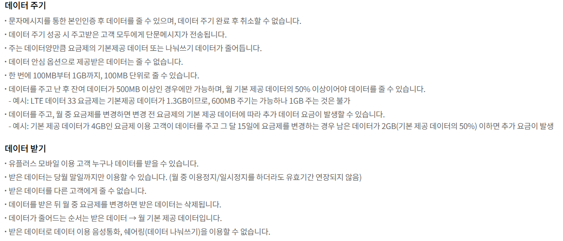 - 일부 저가 요금제는 데이터 선물 기능 제한 가능